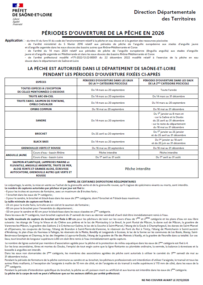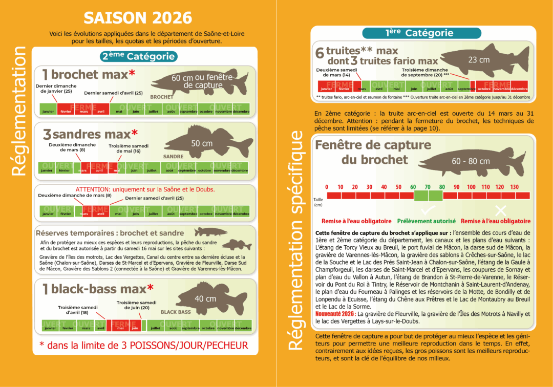 Sur les gravières et darses suivantes de la Saône-et-du-Doubs , l’ouverture de la pêche du sandre et du brochet est donc fixée au 16 mai 2026.