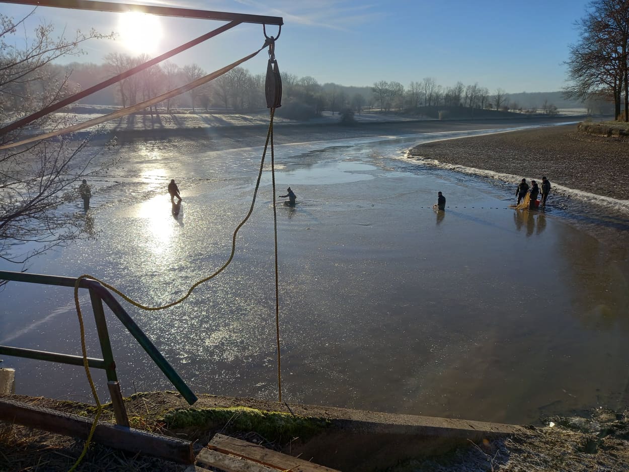 Cette pêche d’étang à permis de récupérer un total de 1340 kg de poissons :